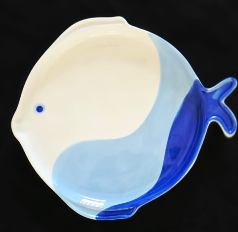 Plato entrada forma pez tonos azul 18 cm
